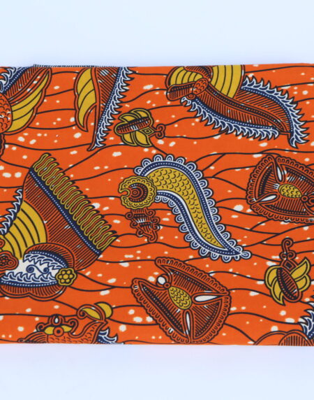 African Beautiful Orange Tribal Pattern 6-yard Fabric