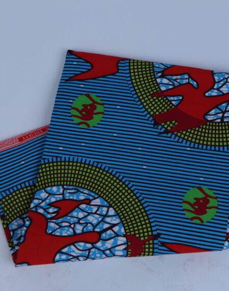 African Blue and Red Bird Ankara Pattern 6-yard Fabric