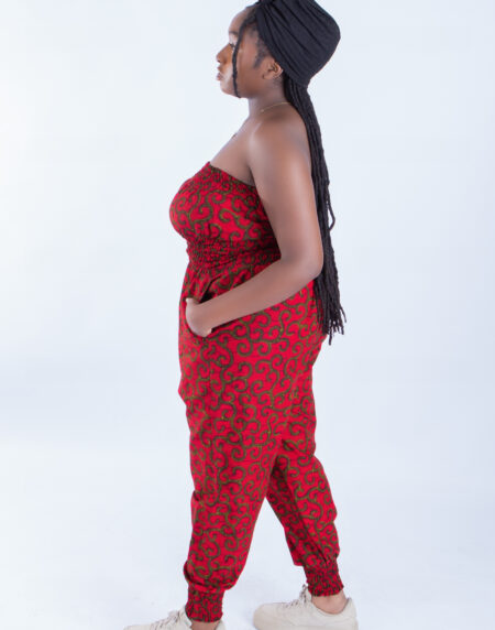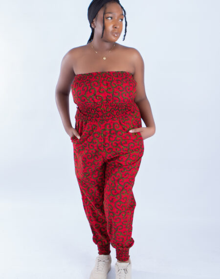 Merci Red Vine Ankara Print Bandeau and Puff Trouser Set