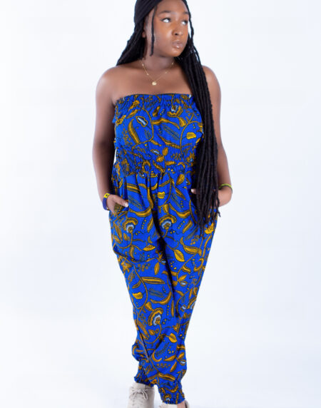 Make a statement with our Beautiful Helen High Neck Tribal Ankara Print Jumpsuit, a stunning combination of African heritage and contemporary fashion.