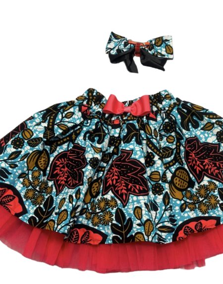 Step into a world of limitless creativity with our JTAphrique Custom  Ankara Kids Bow & Skirt Set, tailored to your perfection.