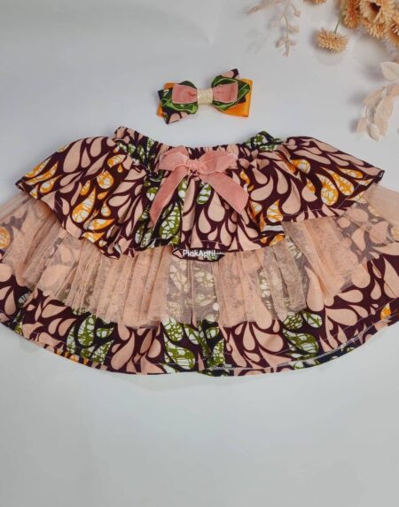 Howla Peach Multi Ankara Kids Bow & Skirt Set