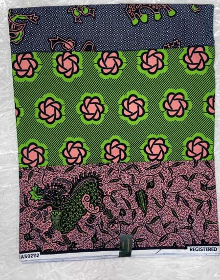 African Ankara Green & Pink Multi Floral Style 6 Yards VIP Fabric