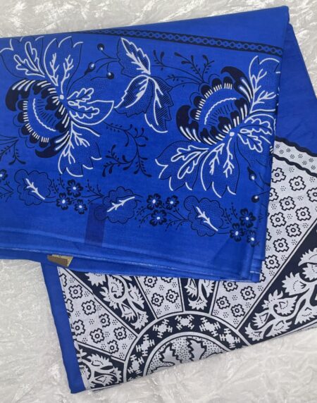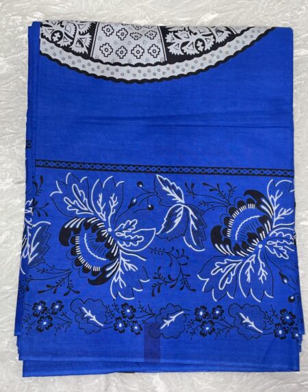 African Ankara White & Blue Geometric Leaf Style 6 Yards VIP Fabric