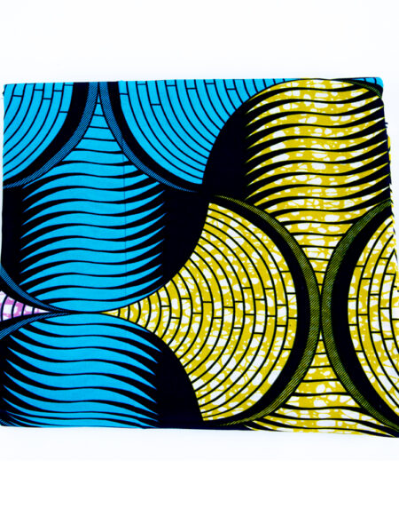 African Ankara Vibrant Blue & Yellow Circle Design Fabric