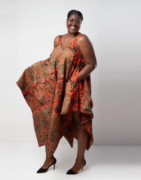 This Anipe Orange & Brown V-neck Ankara Jumpsuit is ideal for that special occasion or event. It has thick, comfortable straps and a midi low v-neck style that is very flattering and leaves room for jewellery. It also has a distinct design with high sides on the legs, and wide legs