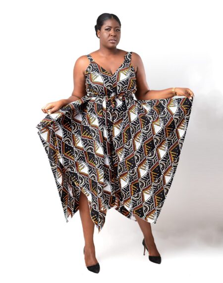 Abdallah Ankara African Print Sleeveless Flared Hem Dress