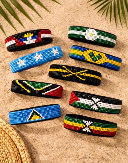Country beaded bracelet featuring flag-inspired colours. Adjustable unisex wristband for cultural pride, travel memories, and everyday style.