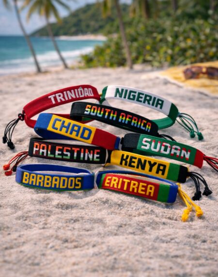 Adjustable woven country flag bracelet celebrating culture, heritage, and travel pride. Lightweight, unisex, and perfect for everyday wear.