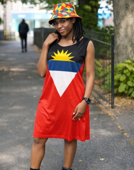 Celebrate island pride in the Antigua Flag Dress. Sleeveless, lightweight, and easy to style for summer, festivals, and everyday wear.