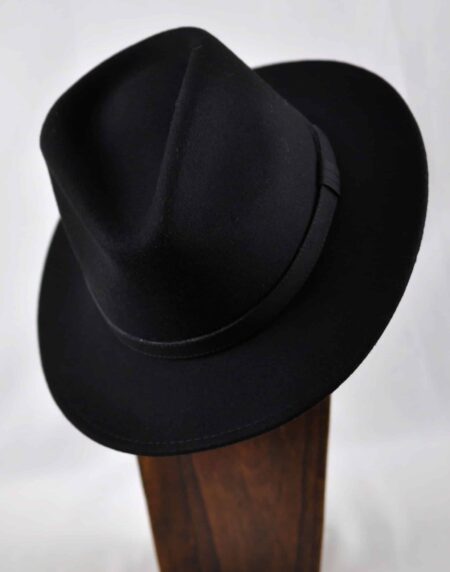 Elevate your style with this timeless Black Fedora, a classic accessory that effortlessly combines sophistication with a touch of rugged charm.Â