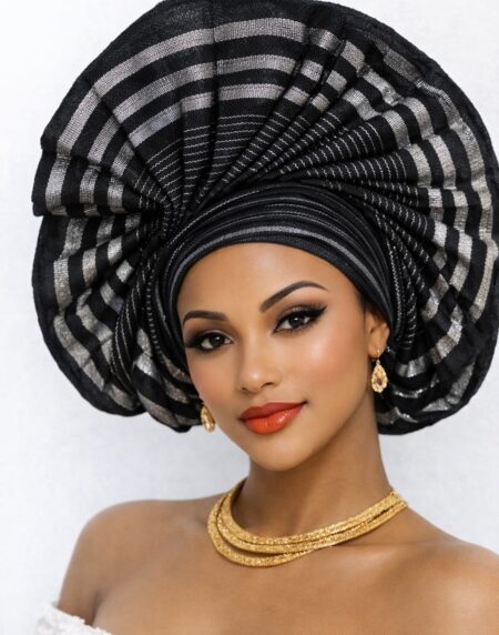 Add elegance and sophistication to your look with this beautifully designed pre-tied turban, a timeless fashion accessory.