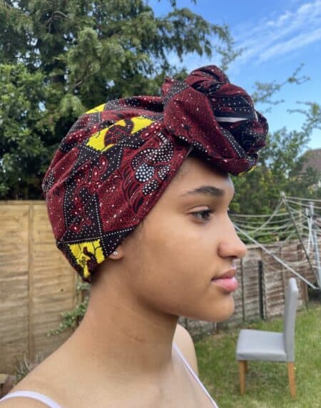 Introducing the exquisite Wanjiru African Print Head Wrap. Here representing a vibrant and versatile accessory that celebrates the beauty of African culture. In addition the head wraps are crafted from high-quality African fabrics. Our website features a wide range of colourful prints and patterns that represent the rich heritage and