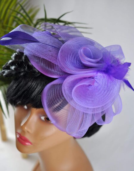 Our stunning Tiombe Purple Rose Fascinator is an accessory that will elevate any outfit to new heights of sophistication and elegance. In addition it is handmade, with beautiful detailing and intricate lace, feathers, and an eye-catching design. Whether you're attending a wedding, a cocktail party, or any other special event, this