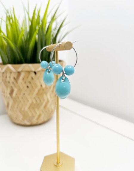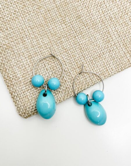 Introducing our Statement Bri Blue Cowrie Beads Dangle Drop Round Hoop Earrings – a captivating blend of bohemian charm and contemporary style.