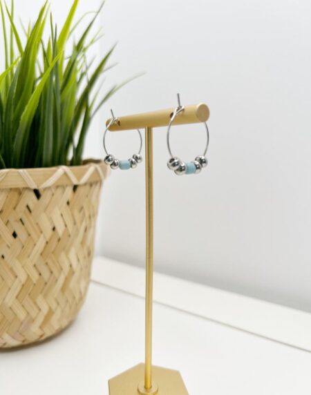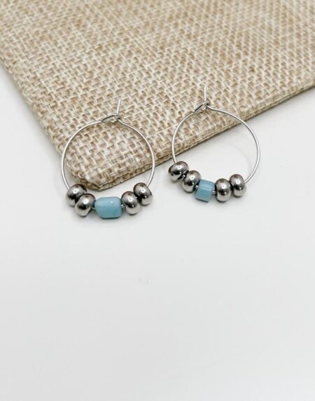 Bri Blue Cowrie Beads Dangle Drop Round Hoop Earrings