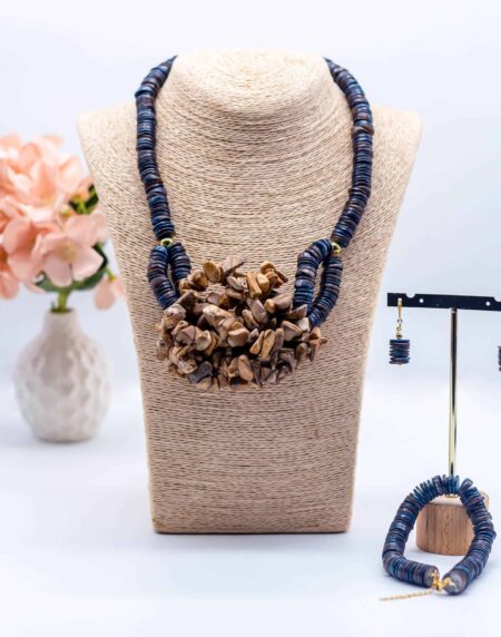 Introducing the Omp Navy Blue and Brown Wooden Beaded Necklace Set – a gracefully understated accessory that adds a touch of earthy charm to any ensemble.