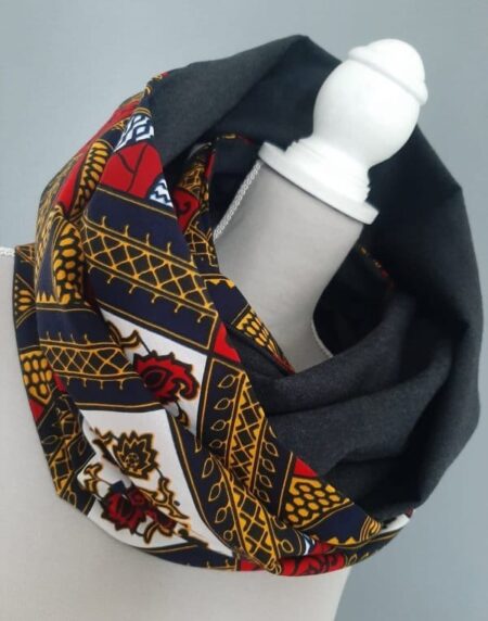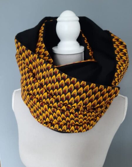 This Tadla Ankara African Print Versatile Infinity Unisex Neck Scarf  is unique, hand-made as well as being reversible. It is made of 100% Cotton with high quality and durable Ankara print fabric and is fully lined with a Polyester Wool blend to keep you warm and cosy!