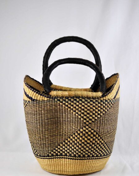 This handwoven rotund basket is a stunning example of Ghanaian craftsmanship, meticulously created using traditional weaving techniques.