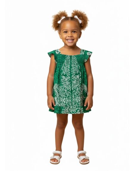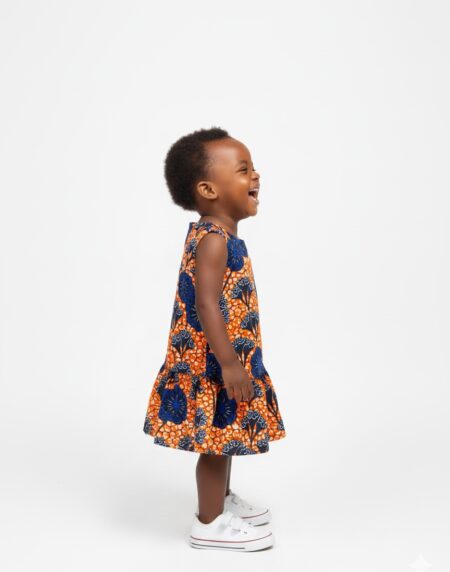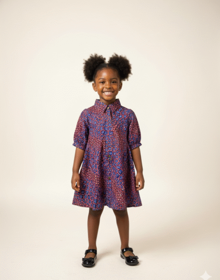 Stylish African Print Girls Dress with soft fabric, flutter sleeves, and comfy A-line fit. Perfect for parties, photoshoots, holidays, and everyday wear.