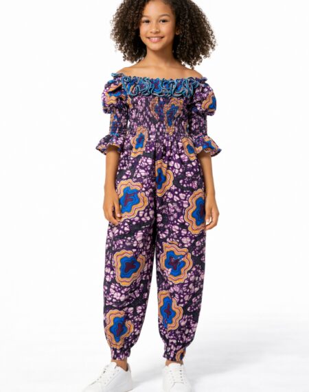 Joyce Purple African Ankara Print Kid's Jumpsuit