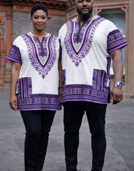 White & Purple Dashiki Shirt