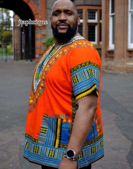 Grab an amazing bargain with this Orange Dashiki Shirt! It is loose-fitting and made from premium quality fabric.