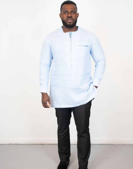 Our Black Isi Agu Igbo Men Shirt, culturally significant fabric that embodies the essence of African tradition. Isi Agu, meaning "lion's head" in the Igbo.