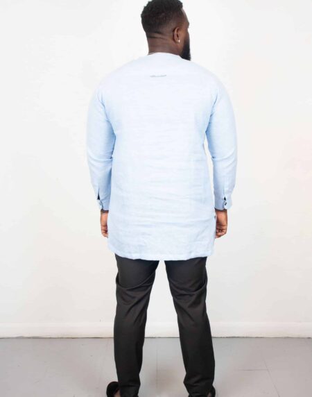 Yaro Light Blue Long Sleeve Linen Polo Shirt