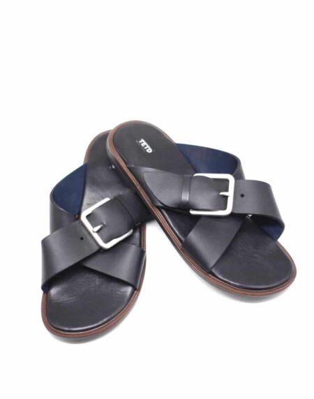 With a cross strap design, these men's black leather slide sandals are perfect for warm summer weather, outdoor trips, holiday, beach or everyday wear.