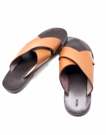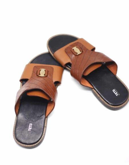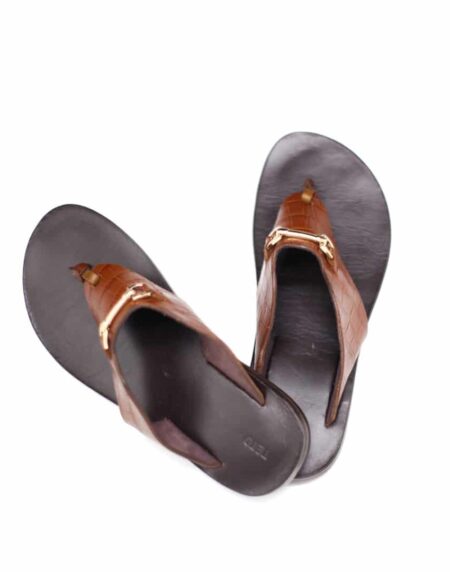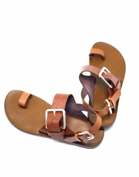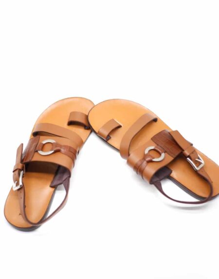 Tumo Tan Brown Toe Loop Leather Buckle Sandals