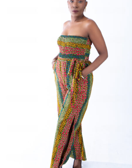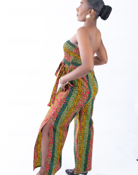 Sina Stunning Leopard Ankara Print Bandeau Slit Jumpsuit
