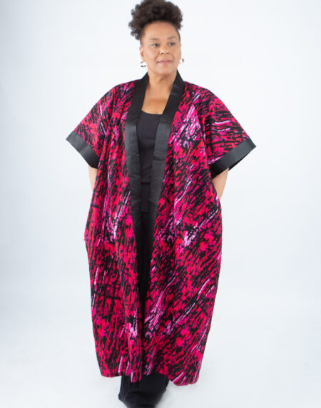 Elevate your wardrobe with this Elegant Red, Pink and Black Batik Kimono Jacket, a timeless statement piece.