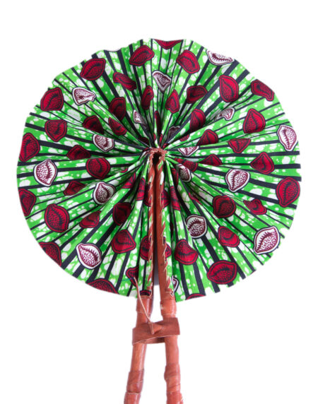 Introducing our Vibrant Red Abstract Ankara Print Round Closable Fan – a stunning blend of vibrant design and functional elegance.