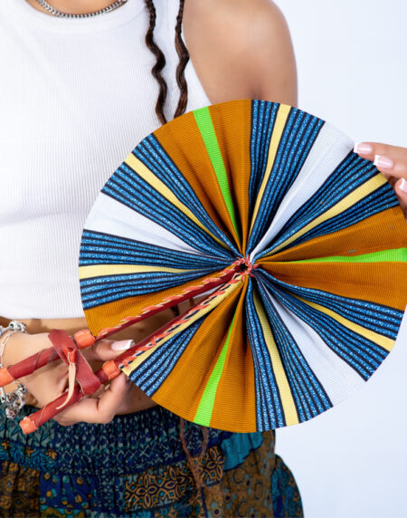 Introducing our Vibrant Multicolour Stripe Ankara Print Round Closable Fan – a stunning blend of vibrant design and functional elegance.