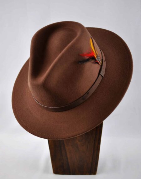 Elevate your style with this timeless Brown Fedora Hat with Feather, a classic accessory that effortlessly combines sophistication with a touch of rugged charm.Â
