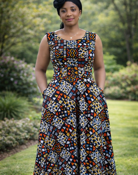 Step into bold elegance with our striking Ankara maxi dress, a graceful piece that celebrates African heritage while offering all-day comfort.
