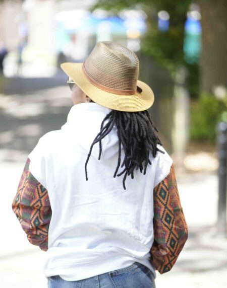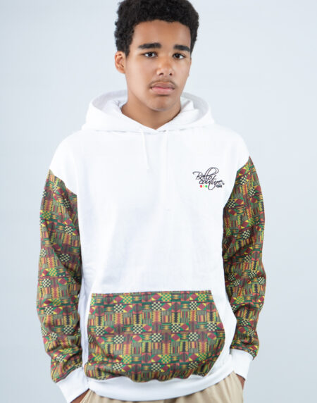 The Unisex Afro-Fusion Hoodie in White brings vibrant Ankara prints to a clean canvas—effortlessly blending modern style with cultural pride.