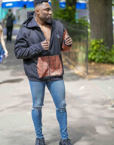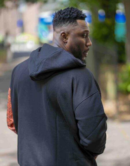 Unisex Afro-Fusion Zip Hoodie – Black with Ankara Print
