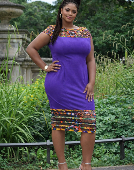 Purplish African Print Net Hem Bodycon Dress