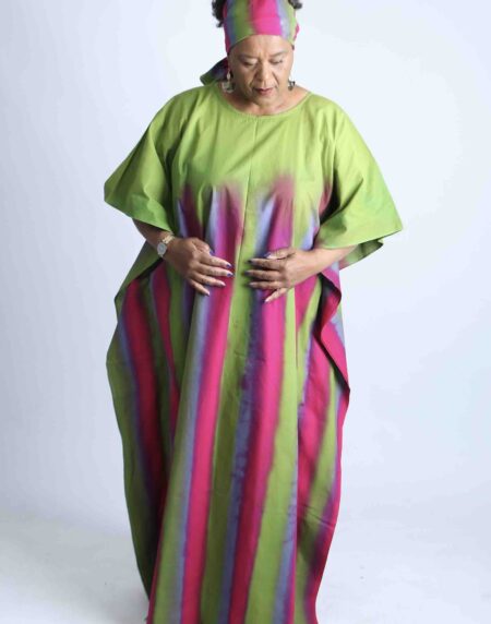 Vibrant Striped African Kaftan With Matching Scarf - Tia