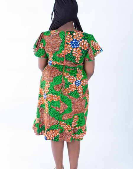 Introducing the Sally Green V-neck Ankara Short Sleeve Wrap Style Dress, a beautiful, handmade piece that effortlessly blends tradition with modern style