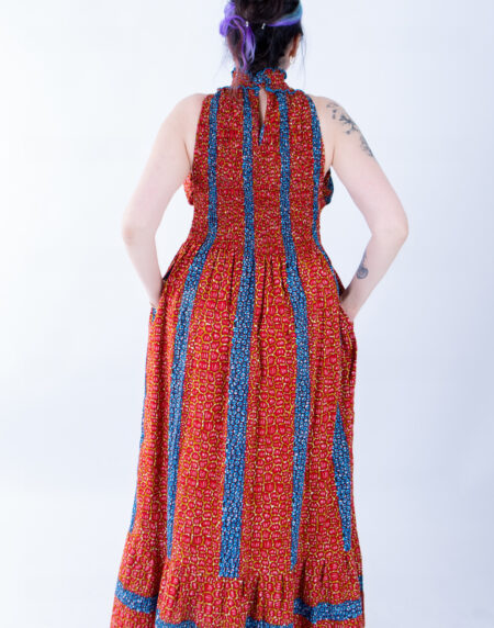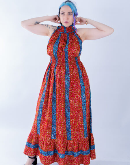 Denise Red and Blue Stripe Ankara Beautiful Halter Maxi