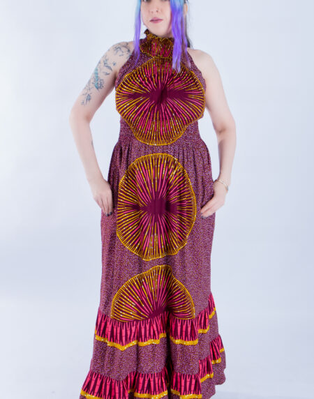 Spice up your seasonal wardrobe with the elegant and chic Beautiful Denise Pink Burgundy Mix Ankara Beautiful Halter Maxi!