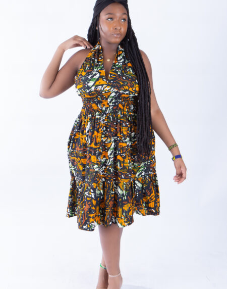 Step out in style with our Beautiful Ankara Halter Neck Playful Swing Dress, a delightful blend of modern elegance and vibrant African culture.