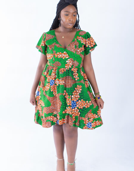 Sally Green V-neck Ankara Short Sleeve Wrap Style Dress