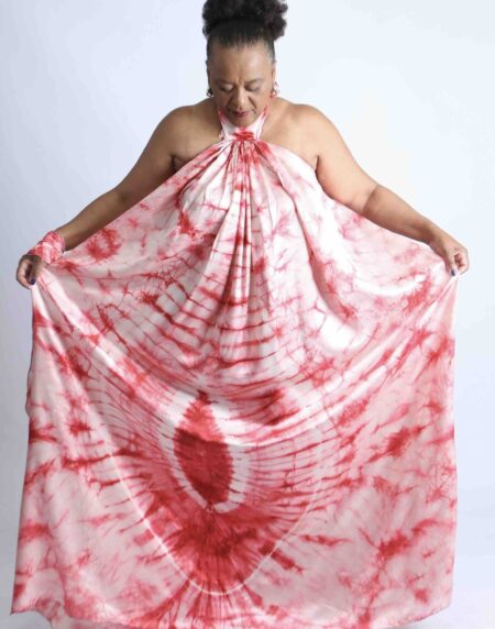Bring vibrant color and effortless comfort into your wardrobe with this tie-dye maxi dress and matching headscarf. Inspired by African fashion.