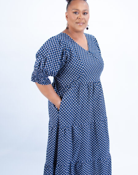 Introducing the Tawny V-Neck Ankara Patterned African Dress. Â An embodiment of African elegance and modern sophistication.