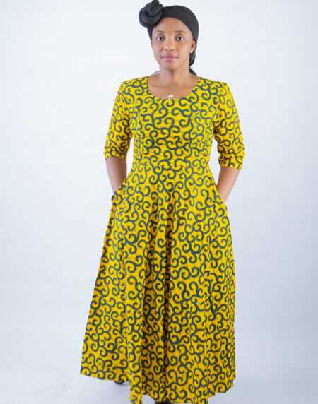 Introducing our exquisite Mirembe African Ankara Print Quarter Sleeve Dress. This is a captivating and elegant masterpiece.