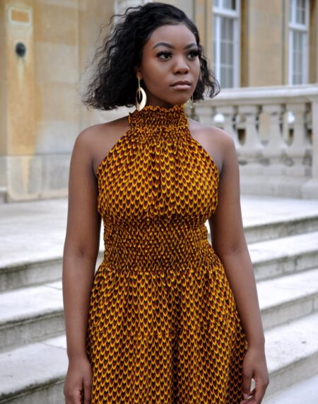 Denise Mustard Stunning Ankara High-neck Halter Maxi